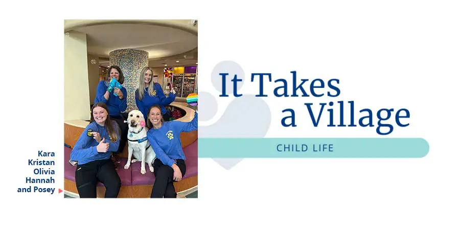 March is National Child Life Month! And we’re giving a much-deserved shout-out to our friends on the Child Life team at Rocky Mountain Children’s. The team dedicates their life to making the hospital easier for kiddos, and that’s something we can fully get behind! We work closely with their team to identify ways we can support their patients’ health and well-being. Over the years, we’ve collaborated closely with Child Life to launch PAWS for RMC, our hospital dog program that welcomed its first dog, Posey, in May 2021.